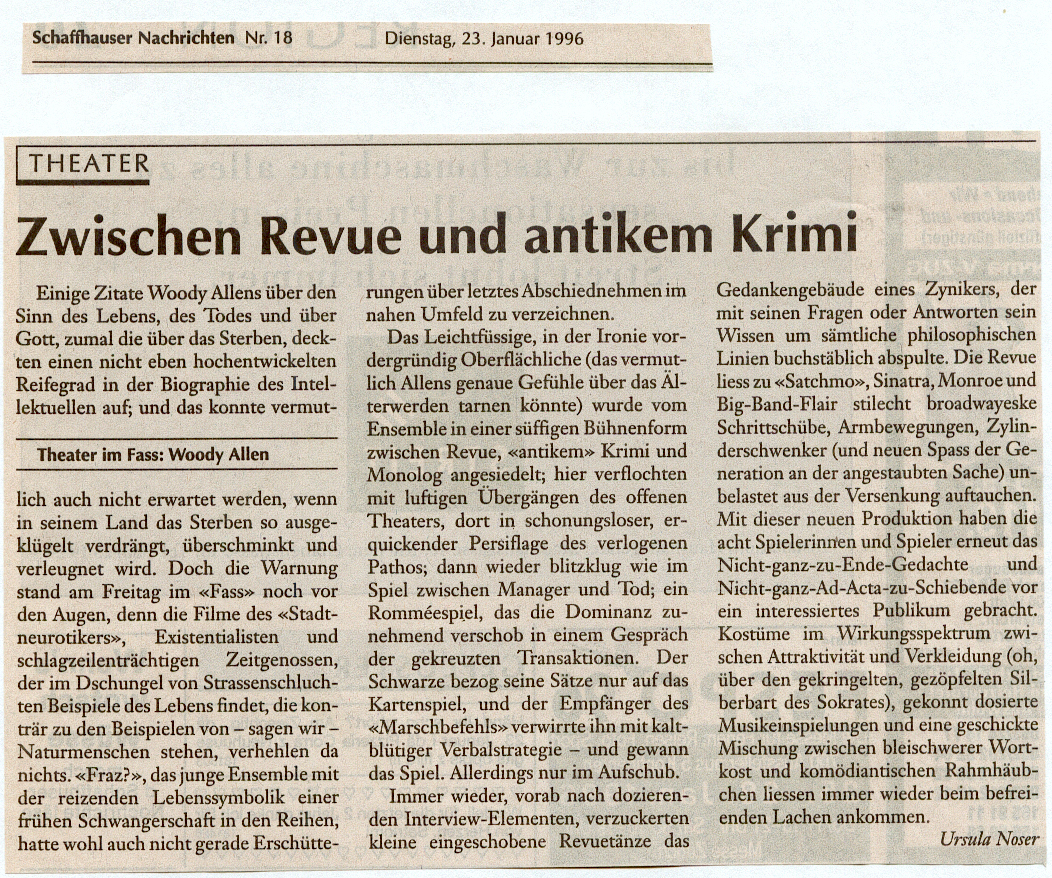 19. und 20 Januar 1996, Theater im Fass, Schaffhausen,